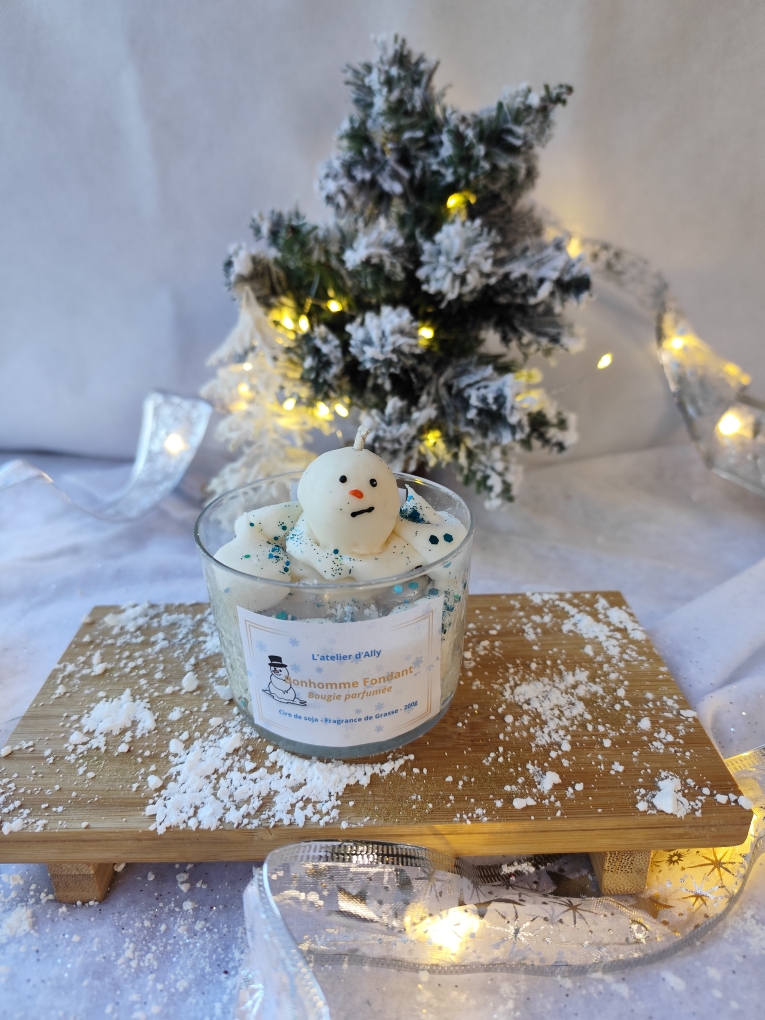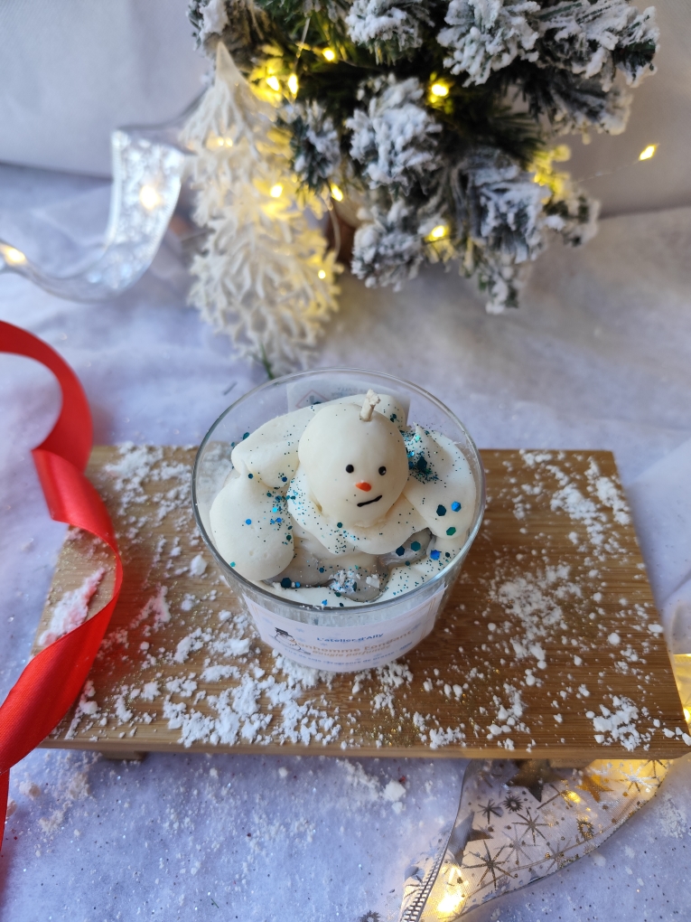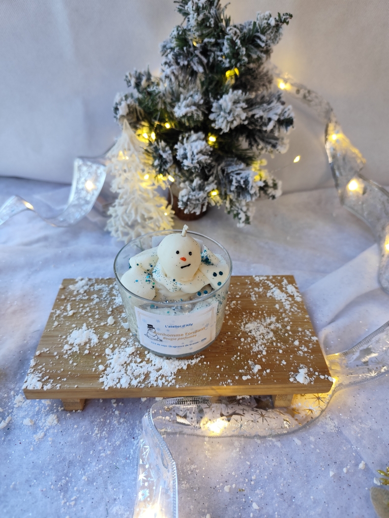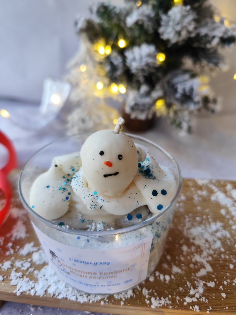 Chaque bougie est unique : peinte à la main à la cire d’abeille, son petit bonhomme fondra à sa manière… comme s’il vous chuchotait un dernier “joyeux Noël” avant de disparaître ❄️💙