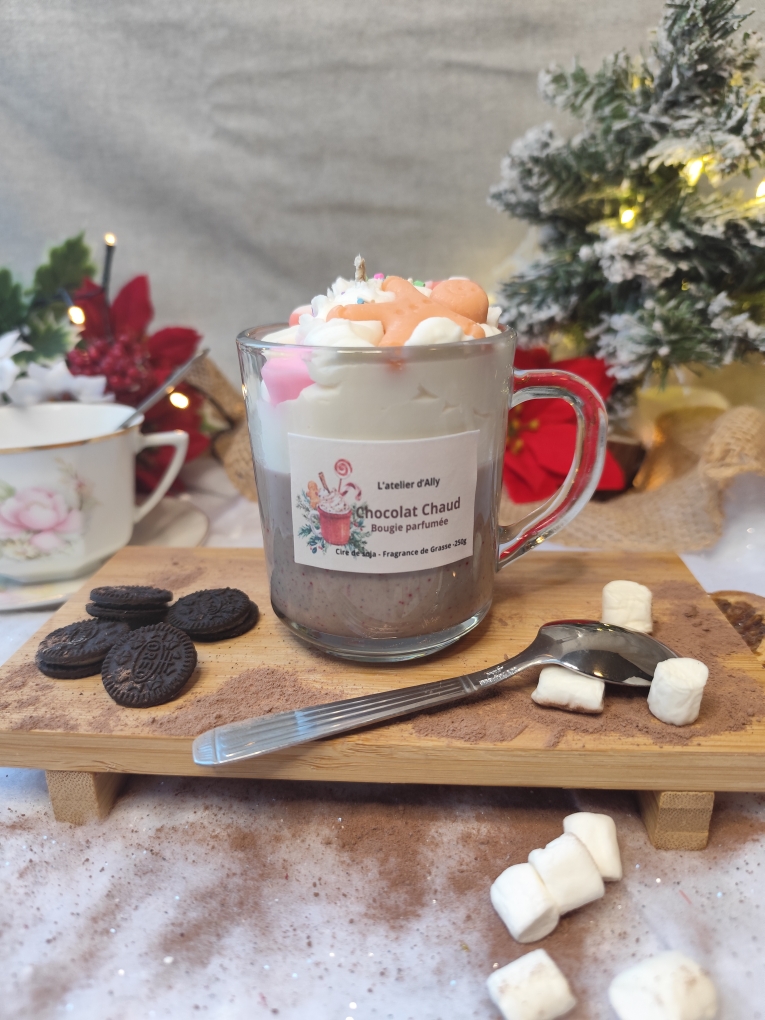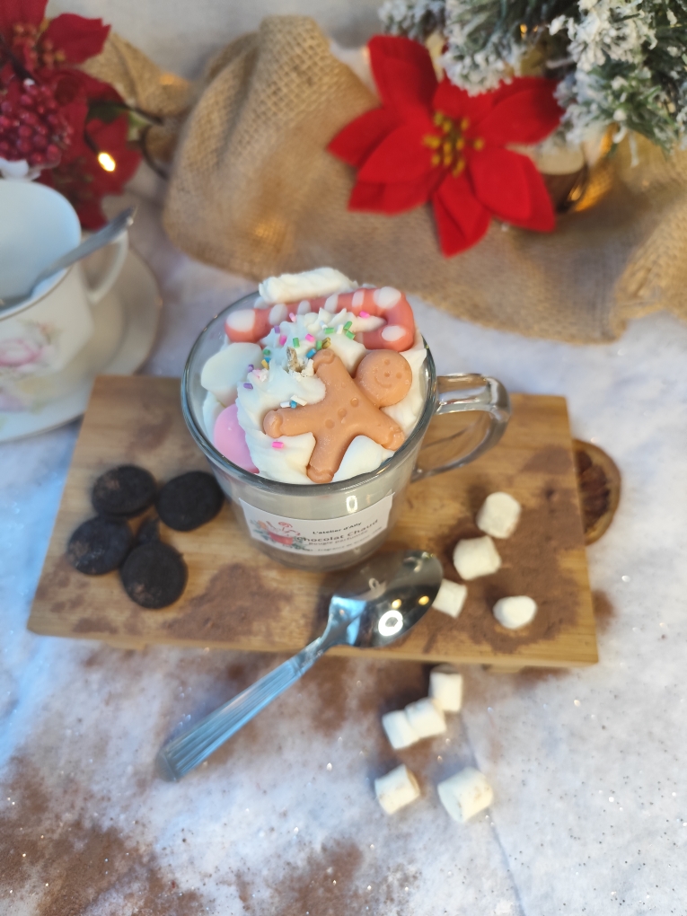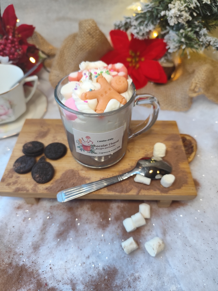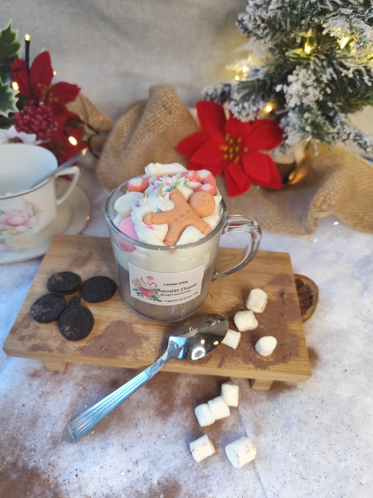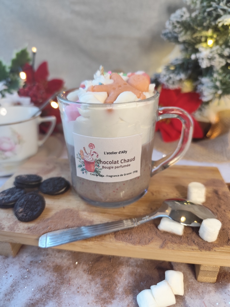 Coulée à la main dans mon atelier, elle diffuse une fragrance délicieusement gourmande de chocolat crémeux et de vanille, comme un dessert réconfortant d’hiver.