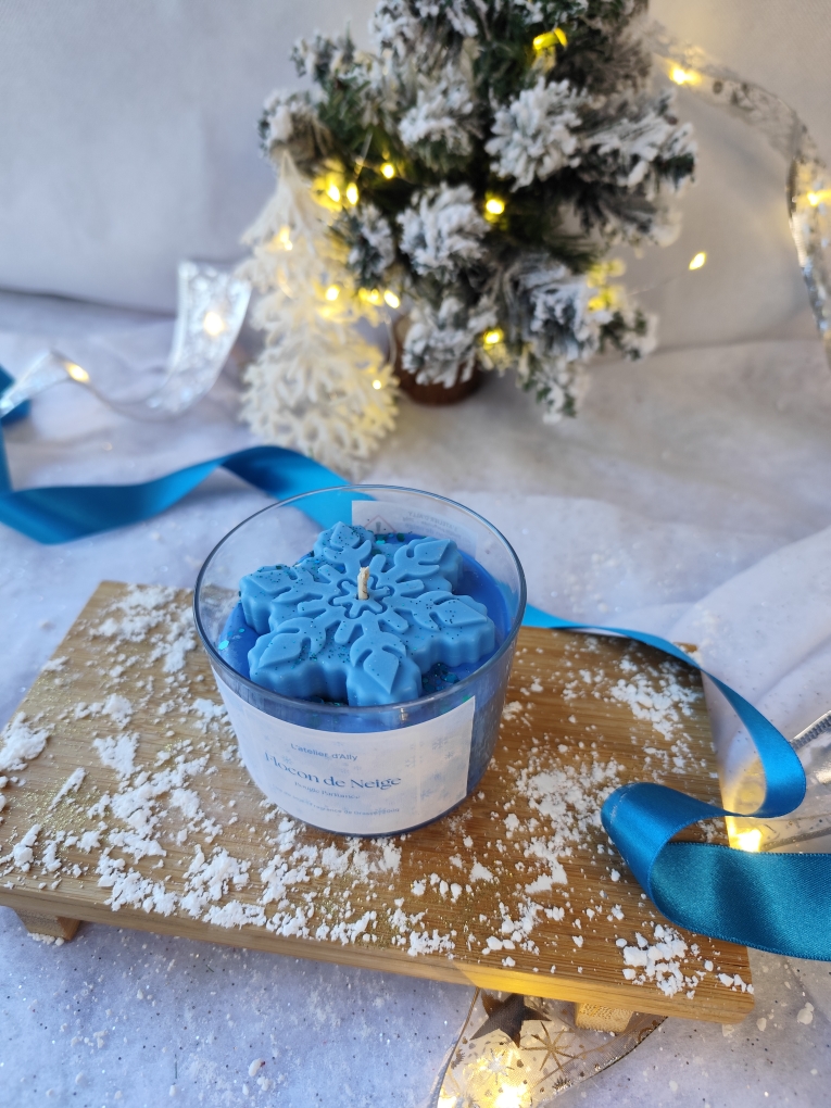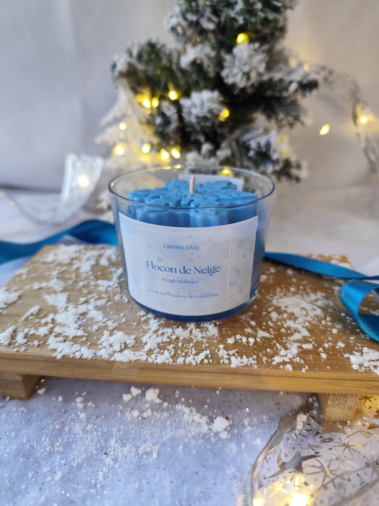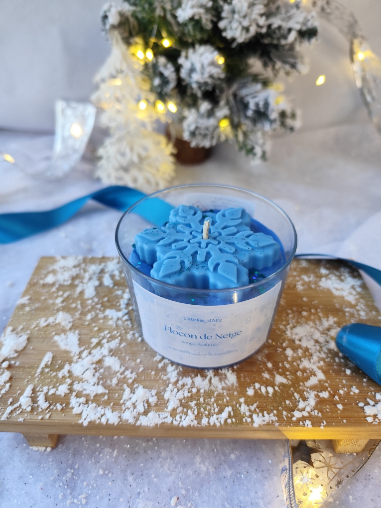 La bougie “Flocon de Neige” capture ce moment de sérénité : un parfum délicat, frais et légèrement musqué, comme une balade en forêt sous les premiers flocons.